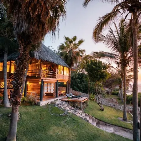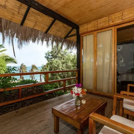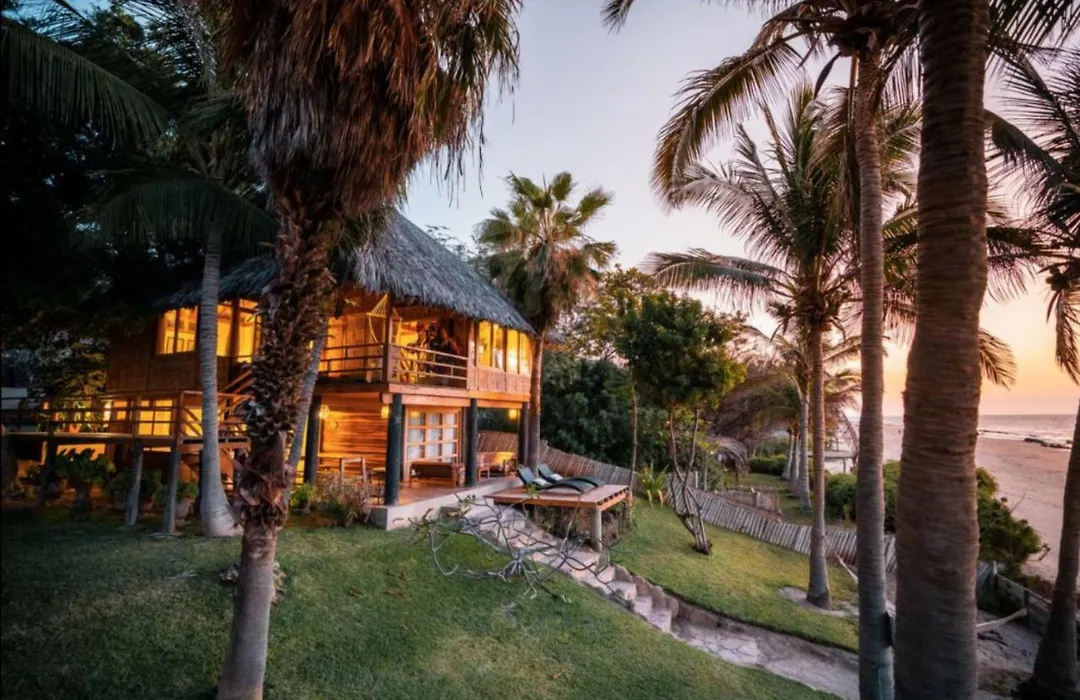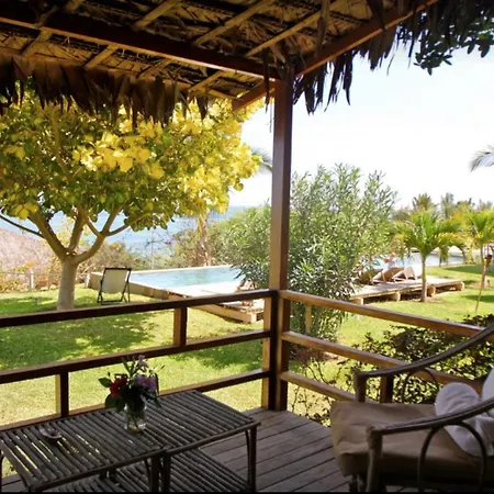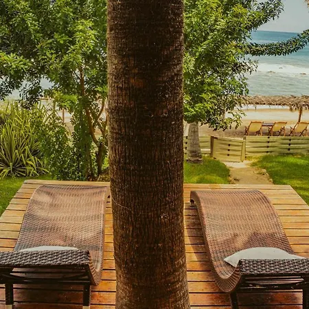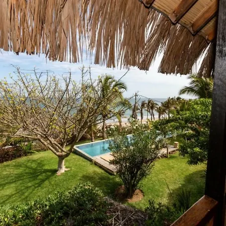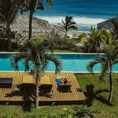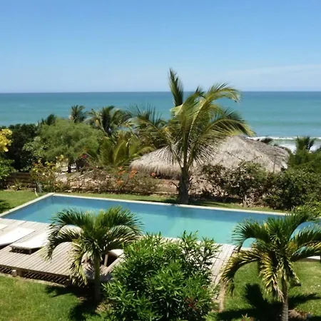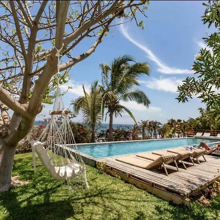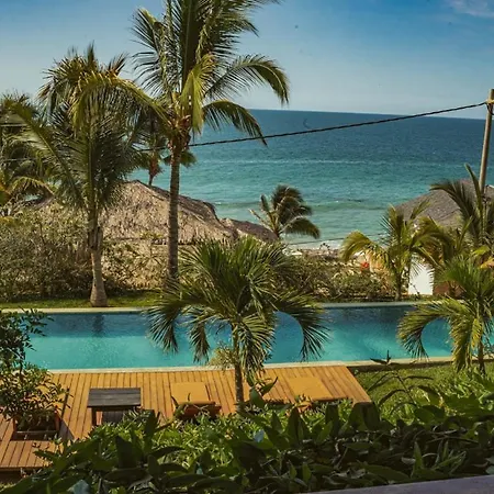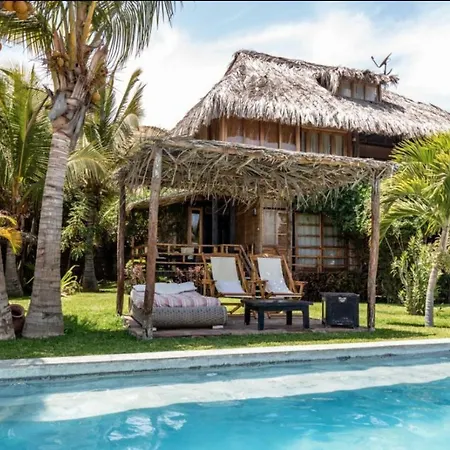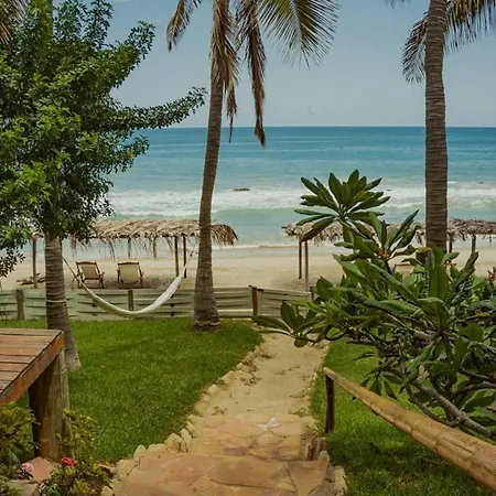 De 10-kamer Coco Ne Villa Máncora ligt op 2 km afstand van Kichic en nodigt gasten uit om te ontspannen op een terras.